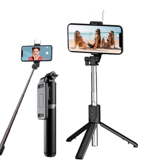 Palo De Selfie Extensible Mango Bastón Monopod Con Botón De Disparo Color Negro
