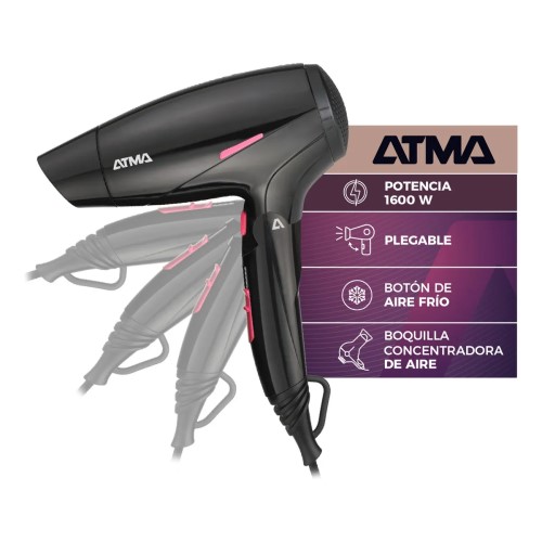 – Iones Acondicionadores: los iones negativos saturan el flujo de aire reduciendo el tamaño de las gotas de agua en el cabello para un secado más rápido. Esto ayuda a acondicionar y suavizar el cabello, al mismo tiempo que le otorga brillo y reduce el frizz.