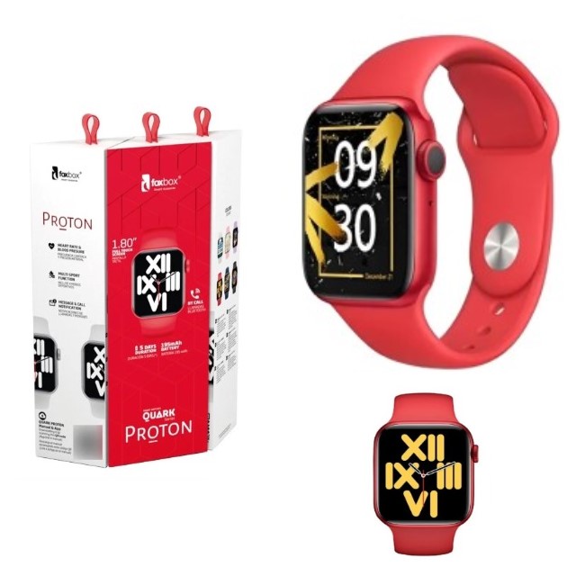Smartwatch reloj inteligente Marca: Foxbox Modelo: Proton Funciones del smartwatch -Interfaz del reloj El reloj sincronizara automáticamente la fecha y la hora del teléfono después de conectarse con la aplicación. -Llamadas bluetooth Marcado: Una vez que los dispositivos están enlazados, se pueden realizar llamadas marcando el número desde el reloj. Contactos: Una vez que se establece la conexión entre el reloj y la aplicación, los contactos más frecuentados se pueden agregar a HiwatchPro. Luego se mostrarán y podrán seleccionar para realizar llamadas desde el reloj. -Múltiples modos deportivos Modo running Esta función le permite registrar las calorías quemadas y el tiempo durante la actividad. Modo saltar la soga Esta función le permite registrar las calorías quemadas y el tiempo durante el salto de soga. Modo ciclismo Esta función le permite registrar las calorías quemadas y el tiempo durante el ciclismo. Modo escalada Esta función le permite registrar las calorías quemadas y el tiempo durante la escalada. -Contador de pasos Muestra el conteo de pasos, la distancia recorrida y las calorías del día. -Controlador del sueño Use el reloj para dormir, el dispositivo registrará la duración del sueño, el sueño profundo y ligero. Puede ver los detalles de su sueño y puede configurar el rango de tiempo de detección del sueño. -Recordatorio de sedentarismo Recuerda los períodos de tiempo sedentario. La frecuencia de recordatorio de los tiempos de sedentarismo deben configurarse en la aplicación. -Frecuencia cardíaca, presión arterial y oxígeno en sangre Muestra los resultados actuales de la frecuencia cardíaca, la presión arterial y la prueba de oxígeno en la sangre. Una vez completadas las mediciones, los datos se cargarán y guardarán en la aplicación. -Cámara Cuando seleccione esta función, automáticamente se abrirá la cámara del dispositivo emparejado. Agite el reloj para tomar una foto. Se deben otorgar los permisos necesarios. -Encontrar el teléfono Ingrese en esta función y mantenga presionado el ícono en la pantalla y el teléfono emitirá un sonido. -Alarma Puede agregar una alarma al recordatorio en la aplicación y sincronizar con el reloj. Puede agregar hasta 5 alarmas. -Música bluetooth Esta función solo se puede usar cuando el dispositivo está conectado a bluetooth. Puede controlar la reproducción/pausa de la música. -Notificaciones Habilite los permisos y seleccione las aplicaciones que enviarán notificaciones desde el teléfono móvil al reloj. -Otras funciones Información personal, cronómetro, linterna, ajustes, información del dispositivo, ajuste de brillo, vibración, ajustes de idioma, modo no molestar, restauración de fábrica, etc. Especificaciones básicas: -Sistemas operativos compatibles: Android / iOS -Pantalla: 1,80” -Duración de batería: 5 días -Memoria ROM: 32mb -Tipo de batería: Polímero de litio -Capacidad de batería: 3.7V/195 mAh -Tiempo de carga: 1,5 Hs. -Apariencia: Aleación de zinc -Sensor: SC7A20